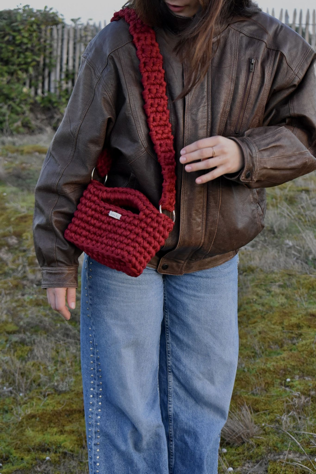 Crocheté à la main sur l’île d’Oléron, chaque modèle met en valeur le savoir-faire artisanal et la singularité des matières recyclées